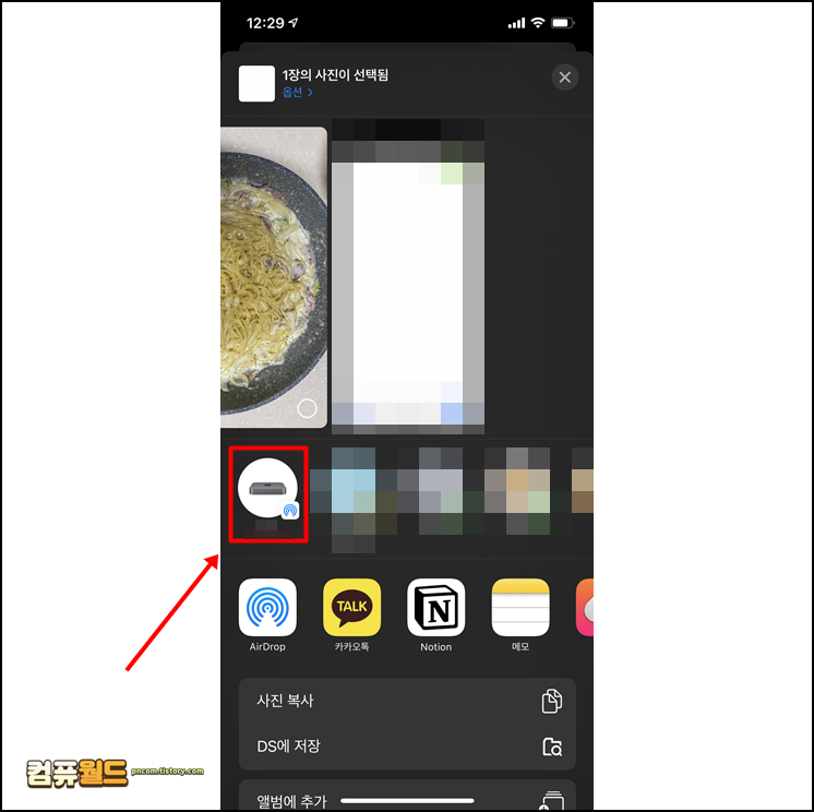 1. 가장 쉽게 다음과 같이 공유를 이용한 에어드롭으로 파일을 옮길 수 있습니다. 단점은 에어드롭을 모두 설정한 맥 컴퓨터만 전송이 가능하다는 점이죠.