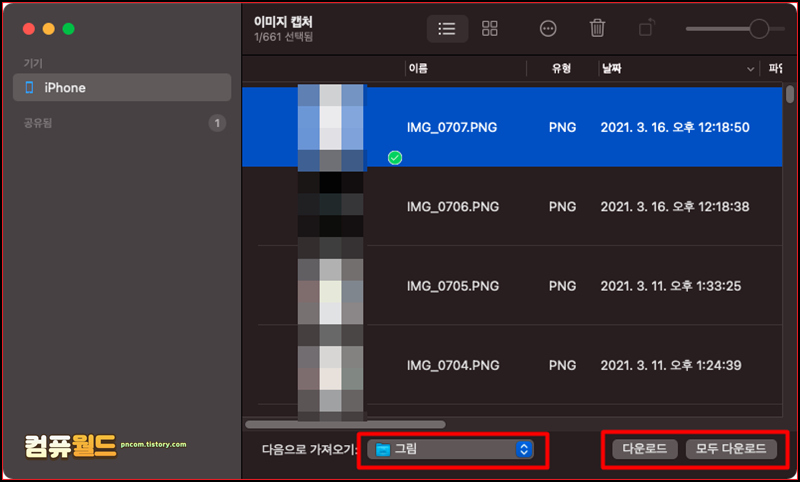 맥 이미지 캡쳐, 아이폰 사진 컴퓨터에 옮기기