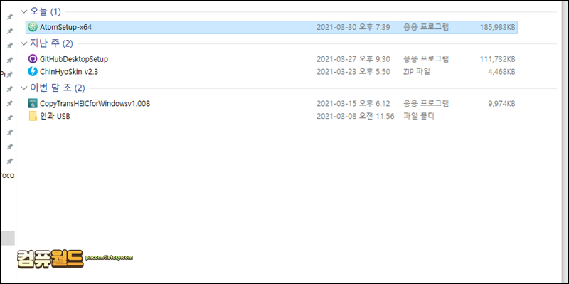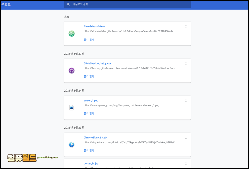 3. 폴더 열기 버튼을 눌르면 저장된 폴더로 이동합니다. 그리고 지금 까지 받은 파일을 날짜 순으로 정렬해서 보여줍니다. 검색도 가능합니다.