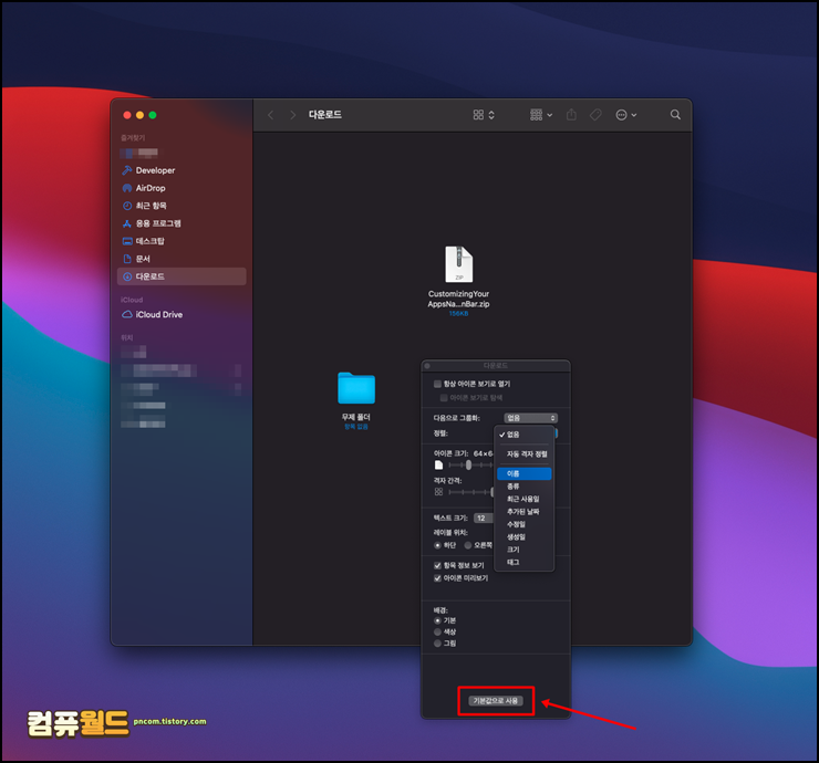 맥 아이콘, 자동 정렬 모두 적용하기 (Finder 기본값)