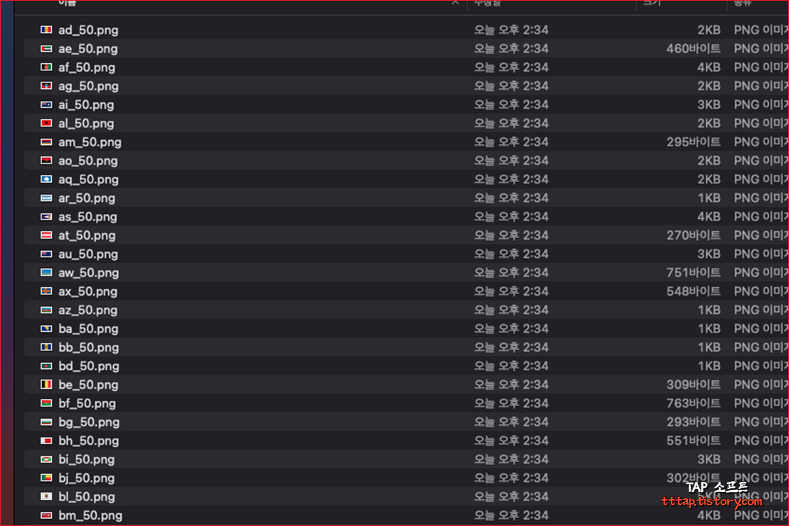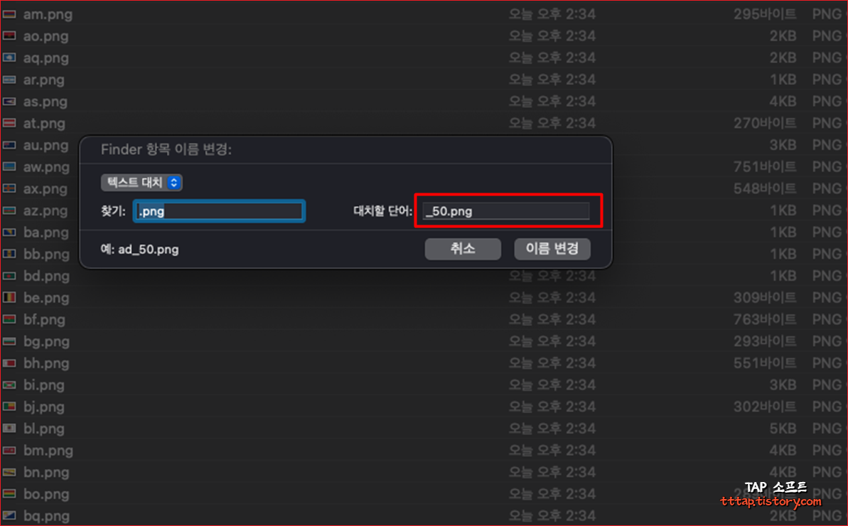 4. 이제 이름 변경을 눌러 창을 닫아주면 아주 쉽게 맥에서 파일이름을 전체 변환됩니다.