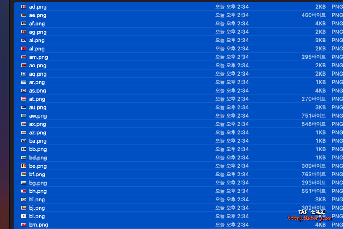 1. 맥 파인더 (Finder) 앱에서 이름을 바꿀 파일을 전체 선택합니다 마우스로 드래그해서 선택해도 되고 Command + A 단축키로도 전체 선택이 가능합니다.
