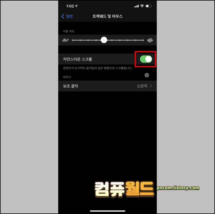 아이폰 / 아이패드, 마우스 스크롤 방향 바꾸기